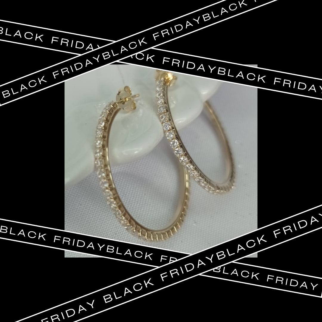 Argola toda cravejada na zircônia, banhada em ouro.